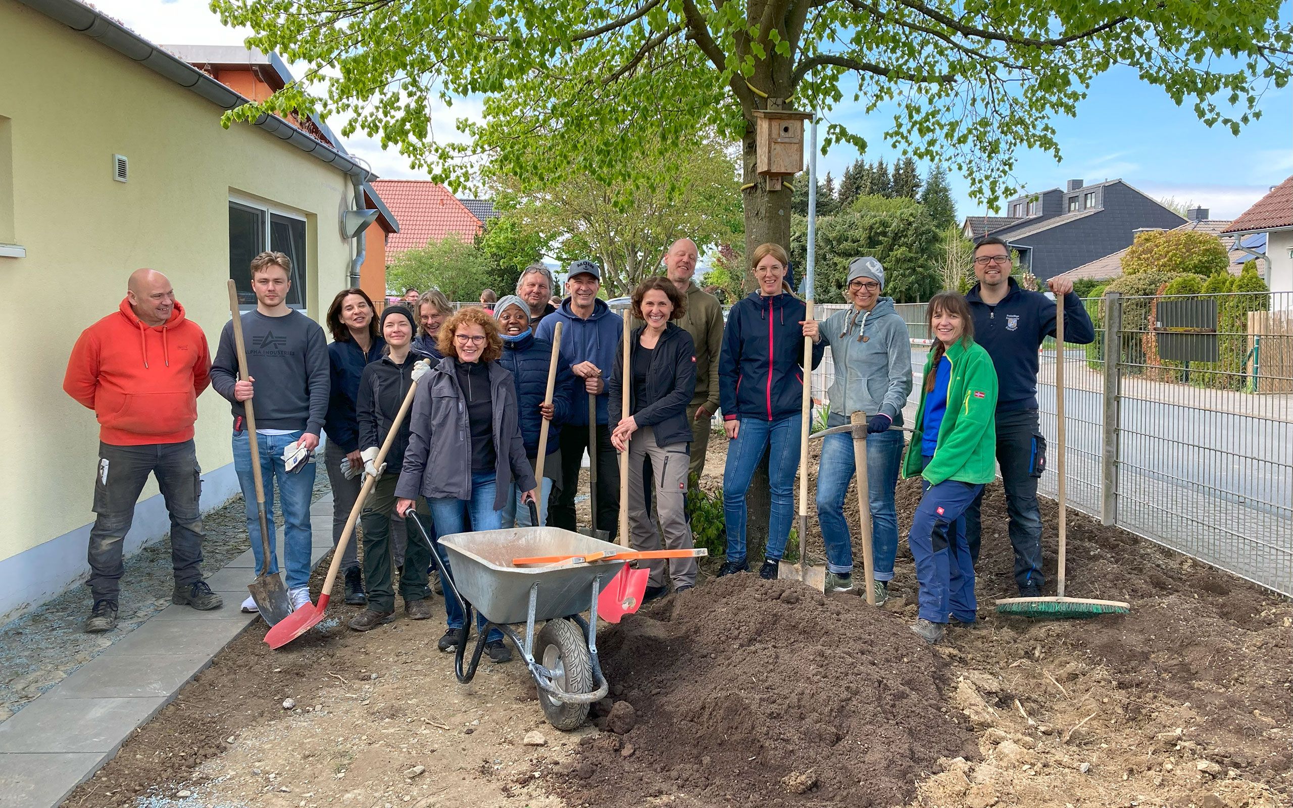 Over two days at the end of April, the volunteers from Heraeus Medical and employees from the daycare centre redesigned the garden under the expert guidance of the gardeners and landscapers. In addition to extensive gardening work, the construction of raised beds and the planting of fruit bushes and hedges, new paths and seating areas were created.
